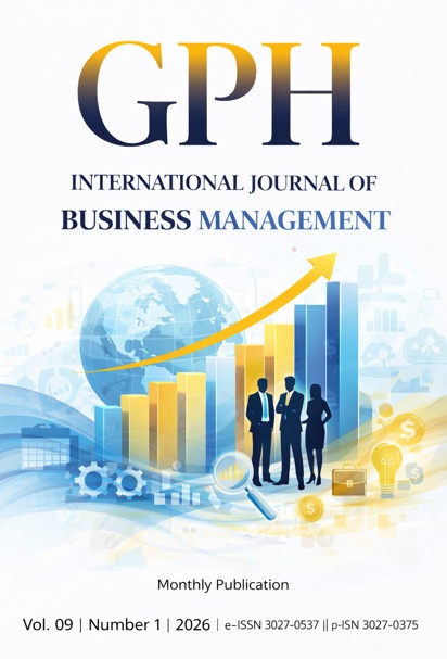 The GPH-International Journal of Business Management e-ISSN 3027-0537 p-ISSN 3027-0375 (IJBM) presents Volume 9, Number 1 (2026), featuring peer-reviewed scholarly articles that address current trends, theoretical developments, and practical challenges in the field of business and management.